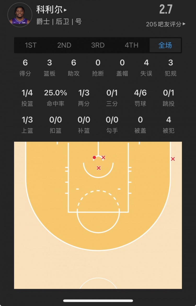 爵士29號秀 以賽亞-科利爾 登場(chǎng)29.9分鐘