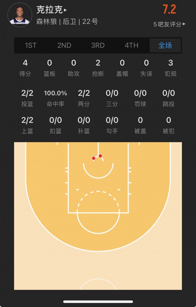 森林狼23年53號秀 杰倫-克拉克 登場(chǎng)11.6分鐘