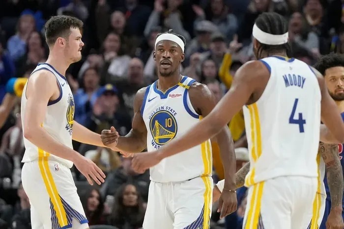 但如果對手一直不犯錯,那么回合就會(huì )朝著(zhù)巴特勒或者格林投三分的方向滑落。這肯定不是勇士愿意見(jiàn)到的事情。勇士需要讓更能投籃的球員出現在巴特勒容易找到的位置。