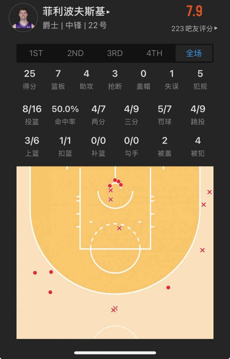 爵士32號秀 凱爾-菲利波夫斯基 登場(chǎng)30.7分鐘
