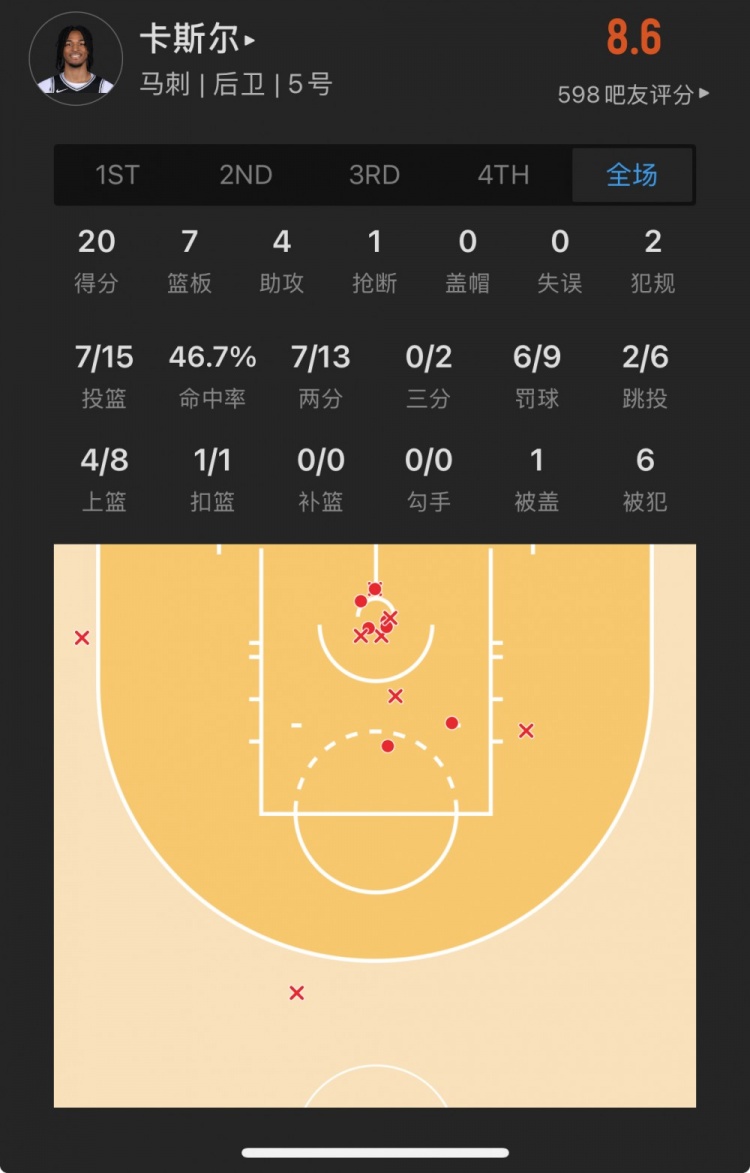 馬刺4號秀 斯蒂芬-卡斯爾 登場(chǎng)27.6分鐘