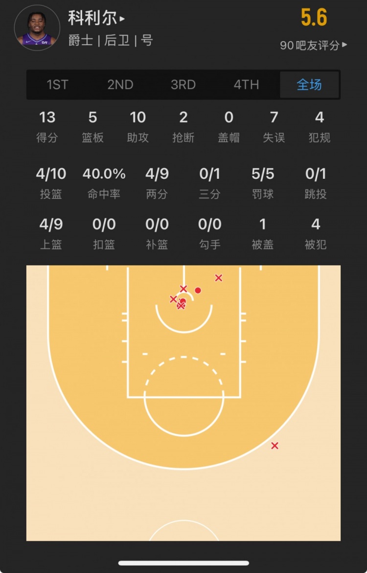 爵士29號秀 以賽亞-科利爾 登場(chǎng)29.5分鐘