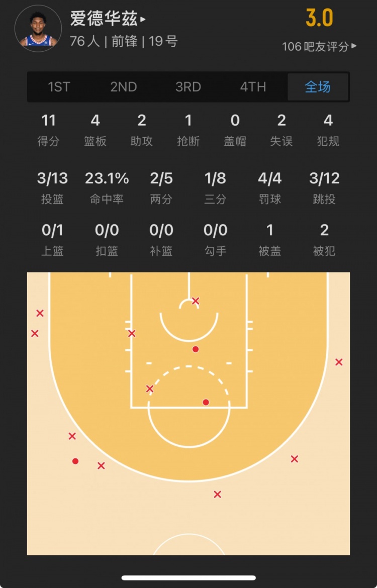 76人落選秀 賈斯汀-愛(ài)德華茲 登場(chǎng)28.7分鐘