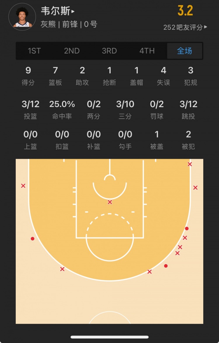 灰熊39號秀 杰倫-韋爾斯 登場(chǎng)32.7分鐘