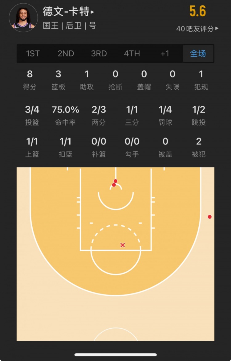 國王13號秀 德文-卡特 登場(chǎng)12.3分鐘