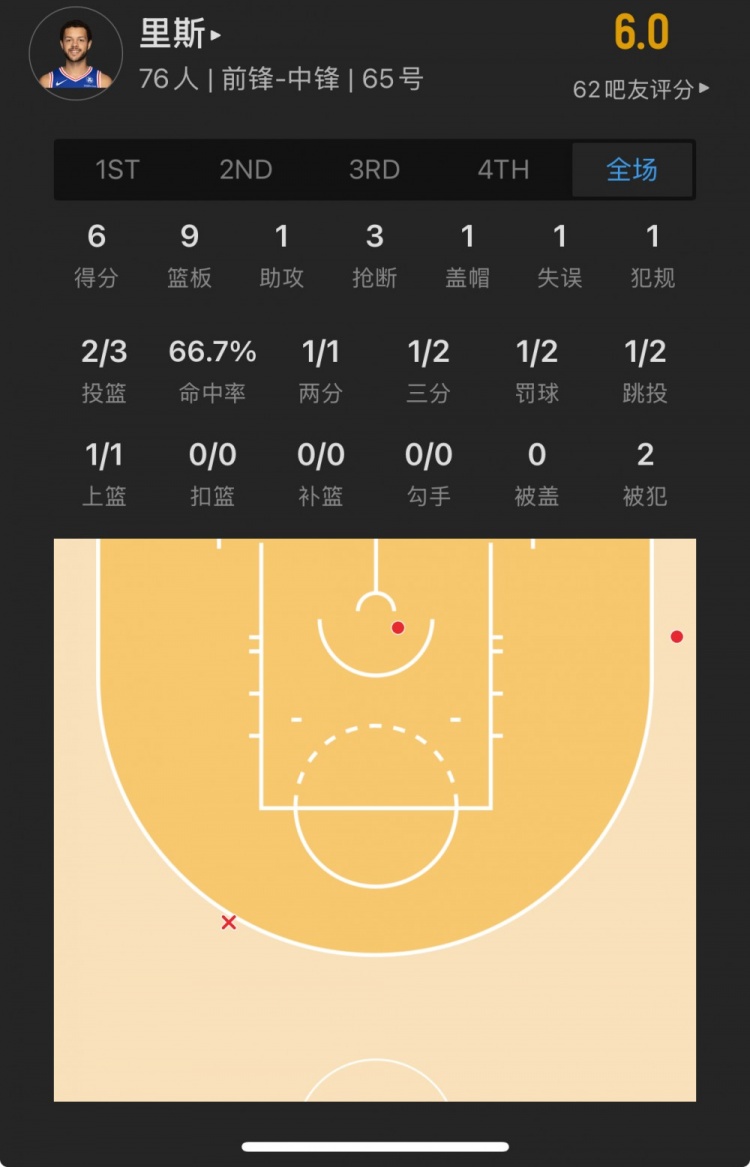 76人落選秀 亞歷克斯-里斯 登場(chǎng)15.0分鐘