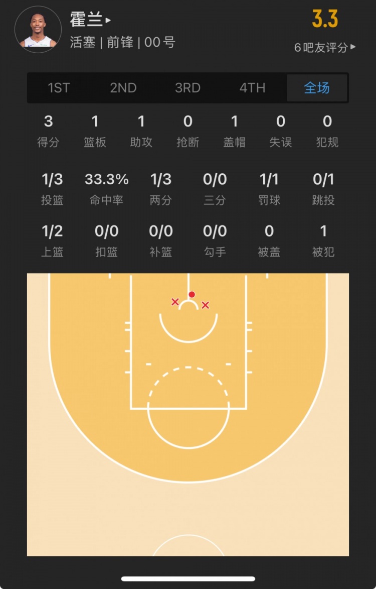 活塞5號秀 羅恩-霍蘭二世 登場(chǎng)10.1分鐘