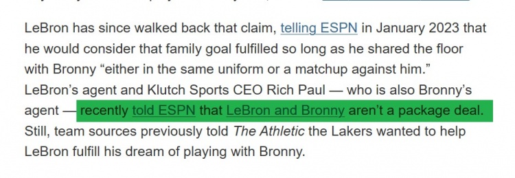 到了2024年6月20日選秀大會(huì )前夕,詹姆斯父子的經(jīng)紀人里奇-保羅在接受ESPN采訪(fǎng)時(shí)透露,布朗尼只為湖人和太陽(yáng)兩支球隊試訓過(guò)。