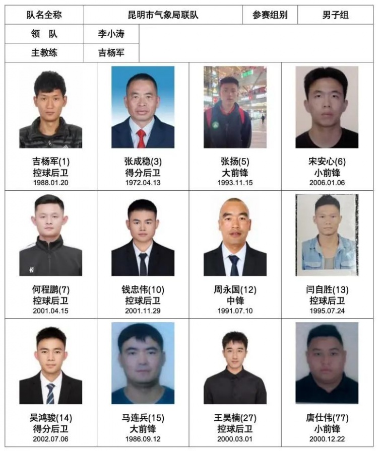 昆明市氣象局聯(lián)隊成立于2004年,主要由昆明市氣象局聯(lián)合各大企事業(yè)單位籃球愛(ài)好者組成。球隊注重團隊合作和個(gè)人技術(shù)的提高,定期組織訓練,始終秉承“快樂(lè )籃球、青春永駐”的宗旨進(jìn)行鍛煉及比賽。球隊敢于挑戰、勇于創(chuàng )新,無(wú)論面對何種困難,都能夠緊密協(xié)作、克服困難、奮力拼搏?,技術(shù)風(fēng)格上靈活多變。通過(guò)積極的參加訓練和比賽,享受籃球帶來(lái)的快樂(lè )。