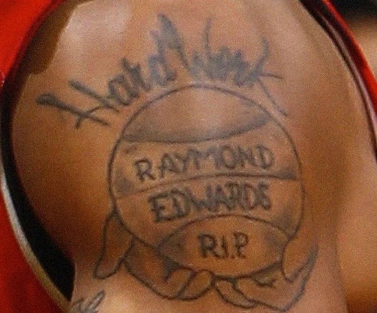 “如果我不打籃球的話(huà),舅舅不會(huì )開(kāi)心的。同時(shí),我要承擔起責任,成為一家之主?!彼诩绨蛏衔牧艘粋€(gè)文身,在一雙祈禱的手上,刻著(zhù)“努力工作”這幾個(gè)字,雙手握著(zhù)一個(gè)籃球,籃球上寫(xiě)著(zhù),“雷蒙德-愛(ài)德華茲,RIP”,努力工作、祈禱和籃球,這是他和舅舅之間,最牢不可破的紐帶。