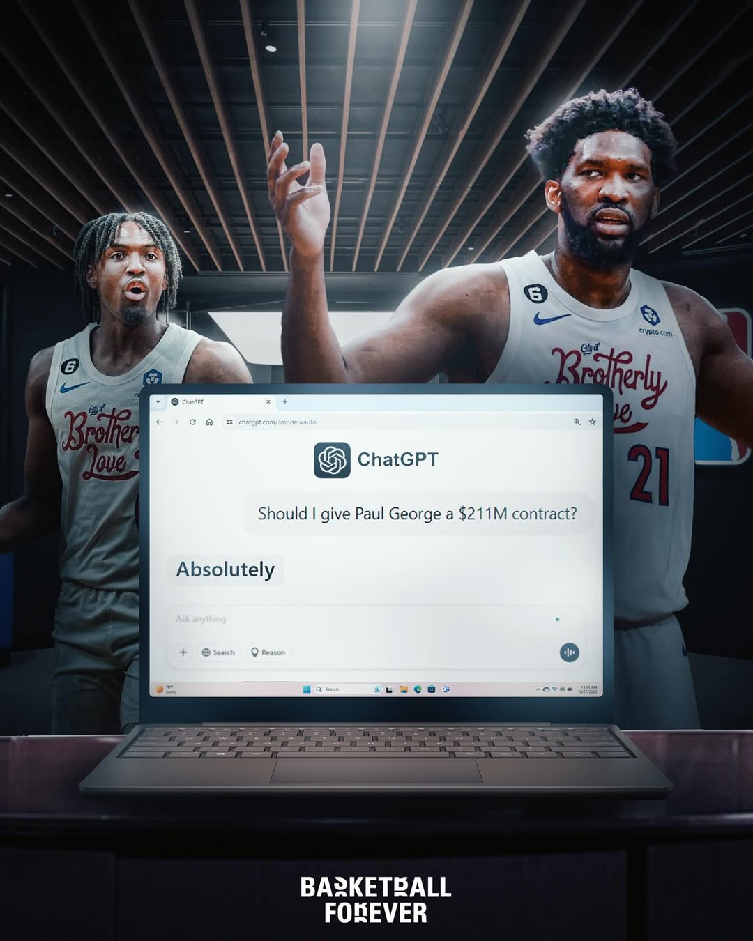 他隨后提到了76人隊使用LLM(大型語(yǔ)言模型)人工智能模型,特別是該團隊愿意嘗試這項技術(shù)的例子。