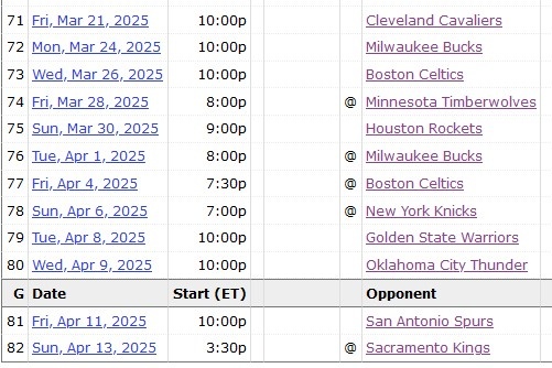 太陽(yáng)后續賽程如下: