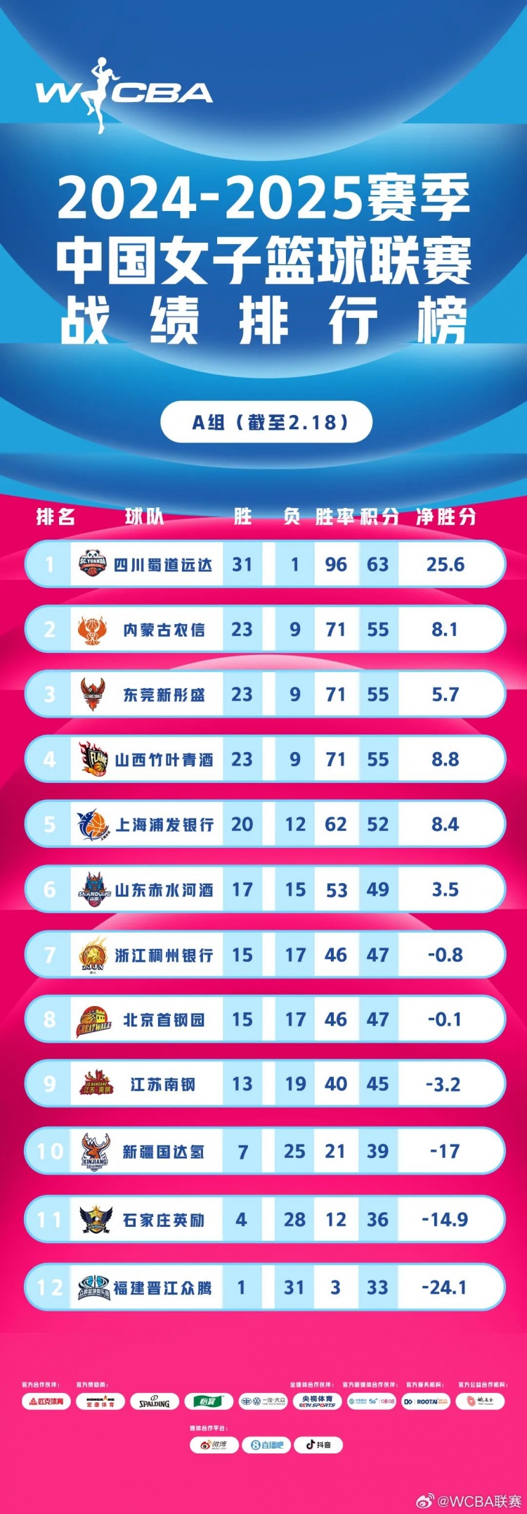 但WCBA官網(wǎng)上的凈勝分數據和微博發(fā)布的數據有矛盾,本文選了微博發(fā)布數據
