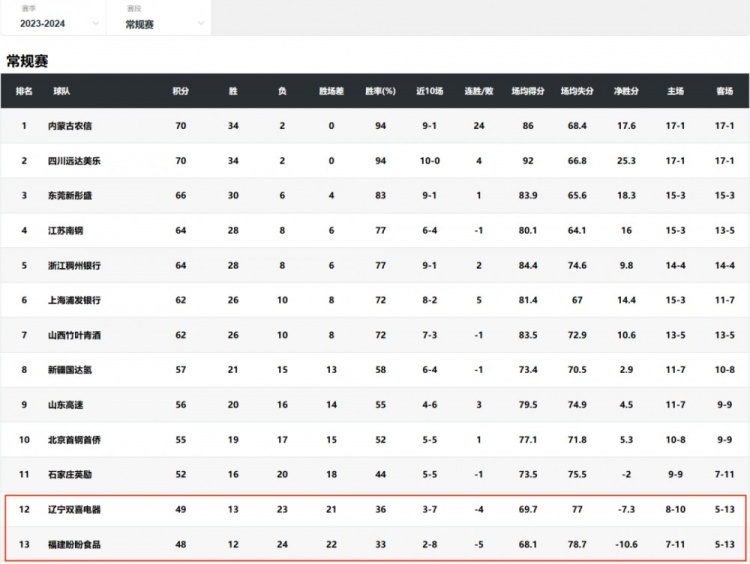 而且,在A(yíng)B分組時(shí),分組也沒(méi)有完全按照原來(lái)的排名對半分,而是搞出了12-9這樣的分組,于是上賽季排名第13的福建,就在準備不足的情況下直接壓線(xiàn)鎖定了季后賽。