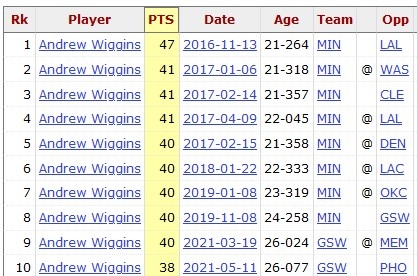 維金斯本場(chǎng)42分創(chuàng )個(gè)人生涯第二高 生涯前十全部40+&森林狼占8次