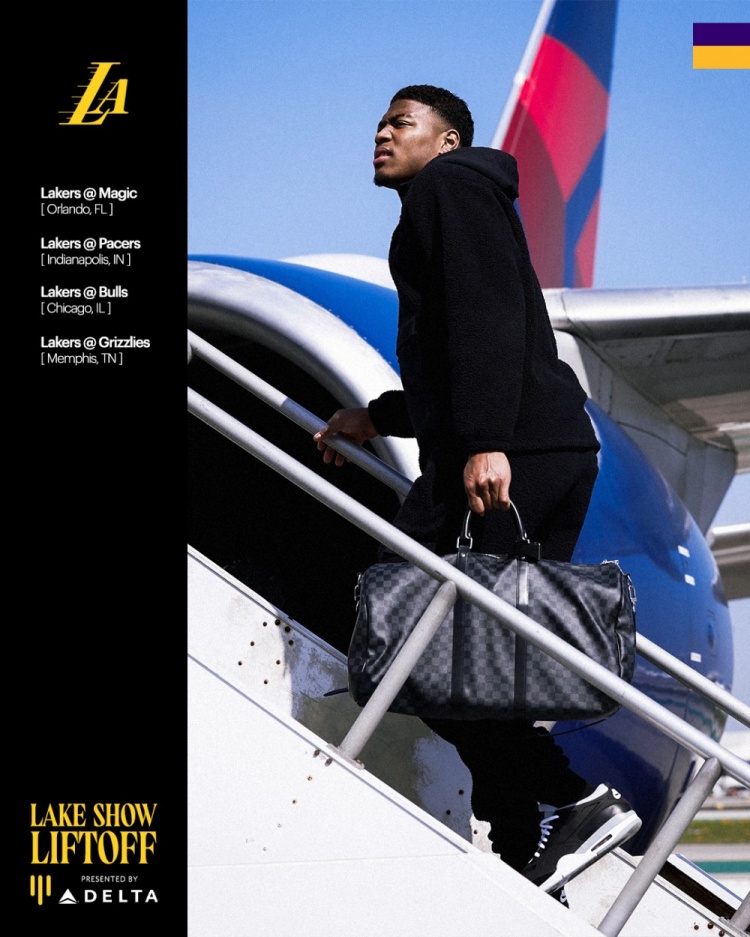 開(kāi)啟4連客!湖人官推曬詹姆斯、八村塁和里夫斯登機照