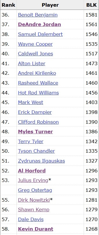 杜蘭特生涯蓋帽總數超越戴爾-戴維斯 上升至NBA歷史第57位