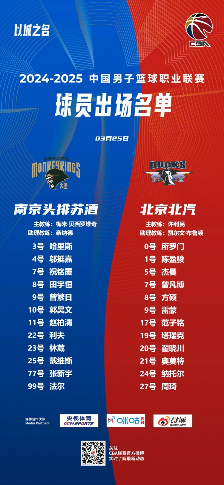 同曦VS北京大名單:郭昊文林葳領(lǐng)銜 陳盈駿和雷蒙復出