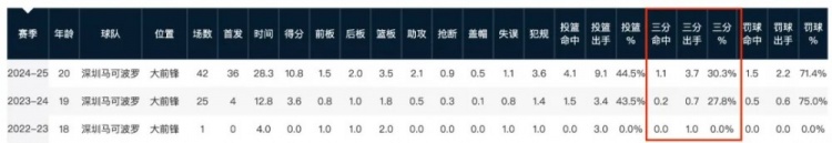 雖然標榜的是“空間型四號位”,但有解說(shuō)會(huì )在提到王浩然時(shí)用“非空間點(diǎn)”來(lái)形容他,他像MPJ那樣大跳投,但卻沒(méi)有MPJ的準度,30.3%的三分球命中率在小球時(shí)代確實(shí)是不夠看......