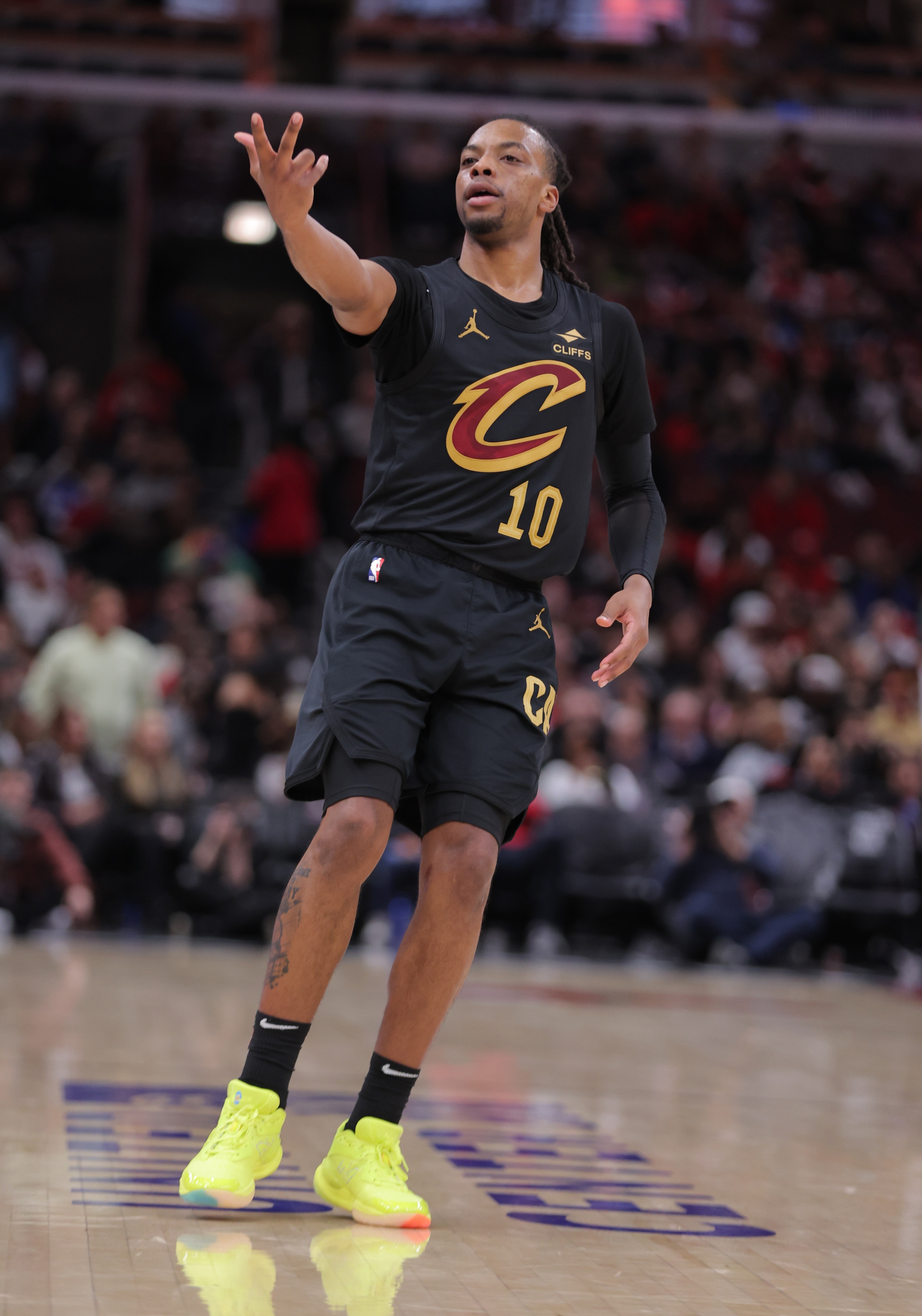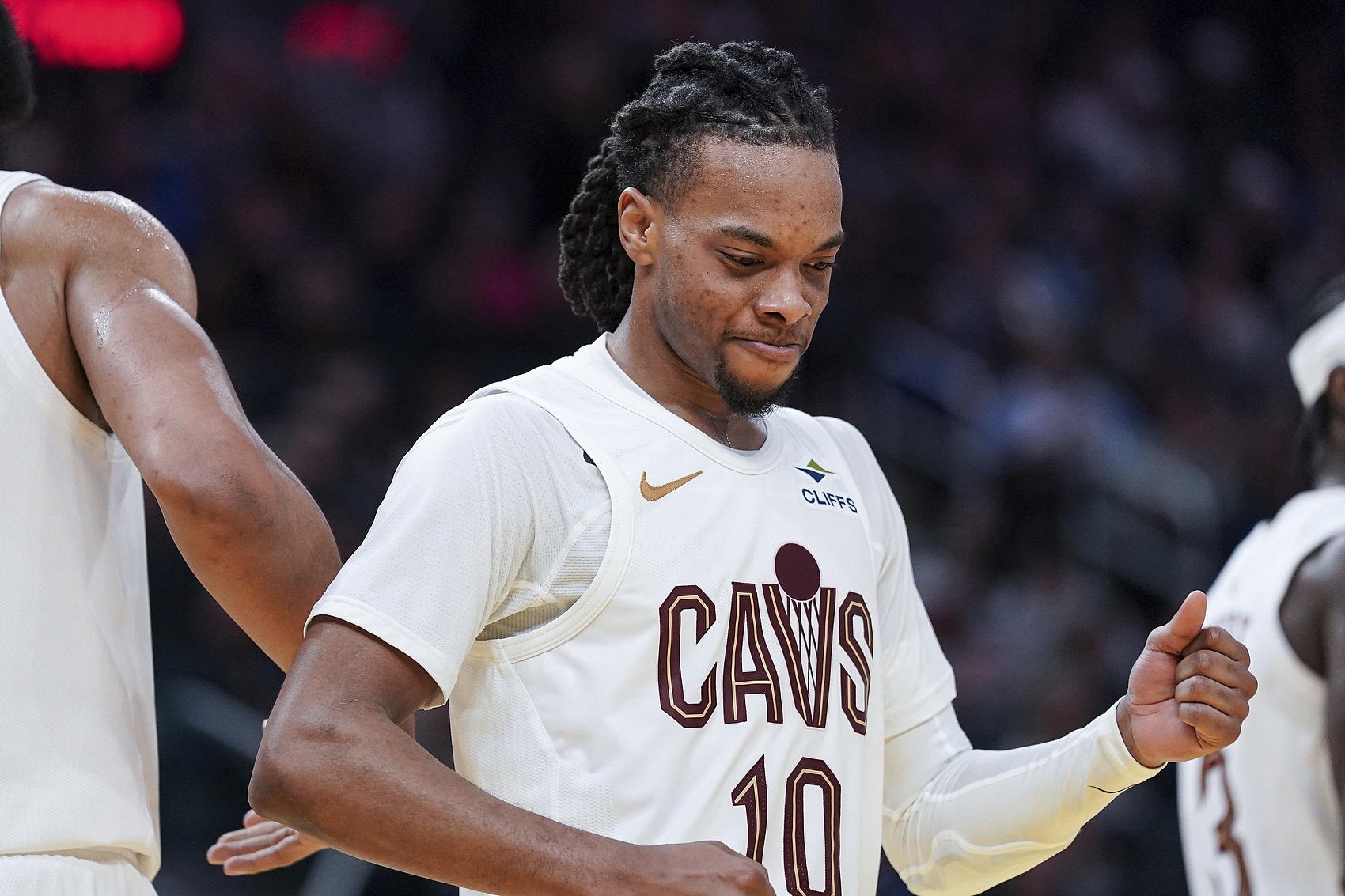 去年,挫折再次襲來(lái)。一系列傷病困擾接踵而至:包括頭部受傷、腰部疼痛反復發(fā)作,以及下巴骨折不得不接受手術(shù)。加蘭缺席了19場(chǎng)比賽,在下巴被固定期間,他只能通過(guò)吸管進(jìn)食。在場(chǎng)外,他還經(jīng)歷了祖母的離世,承受著(zhù)巨大的悲痛。即便如此,他依然能場(chǎng)均貢獻18.0分6.5次助攻,三分球命中率37.1%,幫助騎士隊打進(jìn)了分區半決賽。