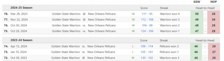 勇士本賽季4-0橫掃鵜鶘 上一次橫掃對方要追溯到2018-19賽季