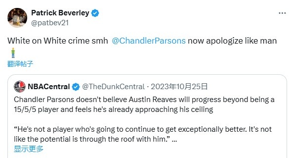 “15+5+5是里夫斯的極限”!貝弗利打臉帕森斯:像個(gè)男人出來(lái)道歉