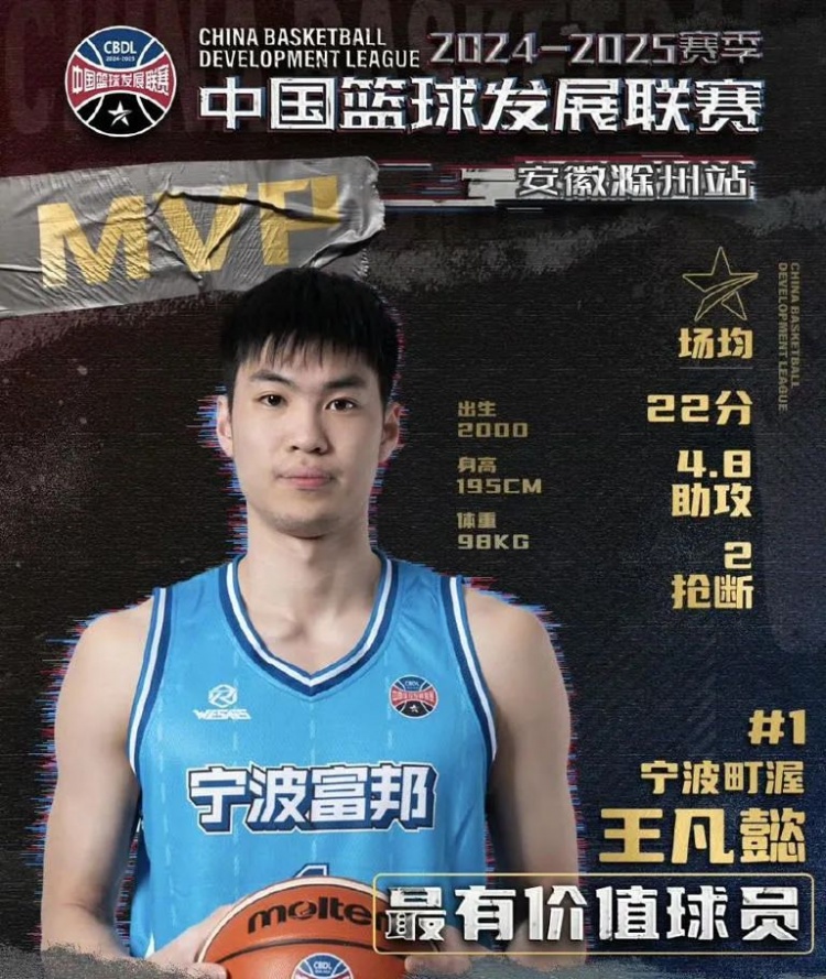 于是,王凡懿就只能去CBDL發(fā)光發(fā)熱了,不出意料的是,他在這里如魚(yú)得水……第二階段滁州站比賽,寧波在他的帶領(lǐng)下6戰全勝,王凡懿也以場(chǎng)均22分4.8助攻2搶斷收獲賽事MVP……