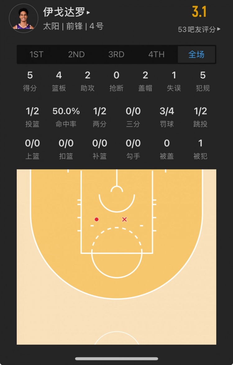 太陽(yáng)40號秀 奧索-伊戈達羅 登場(chǎng)19.6分鐘