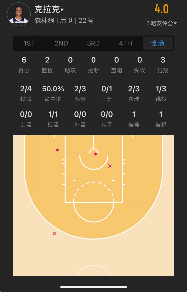 森林狼23年53號秀 杰倫-克拉克 登場(chǎng)18.2分鐘