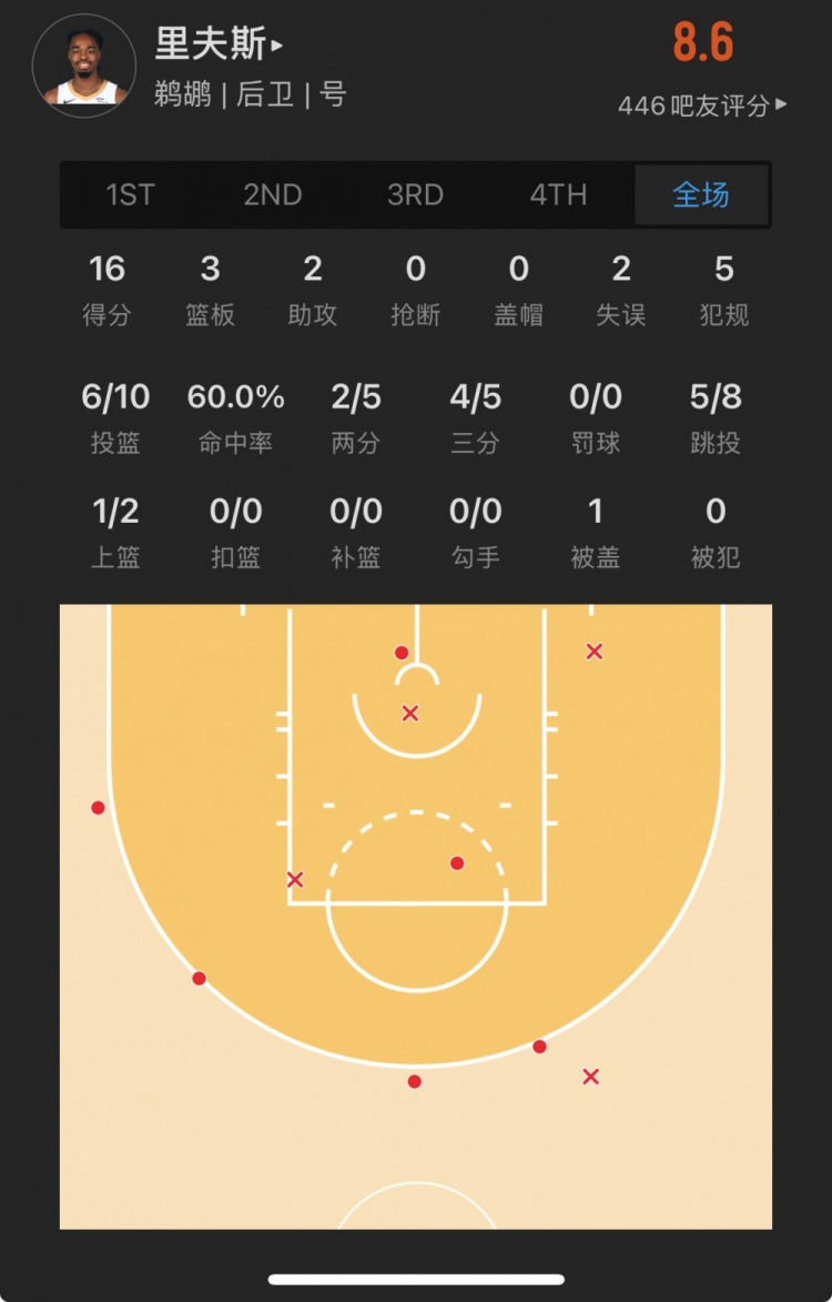 76人落選秀 亞歷克斯-里斯 登場(chǎng)21.1分鐘