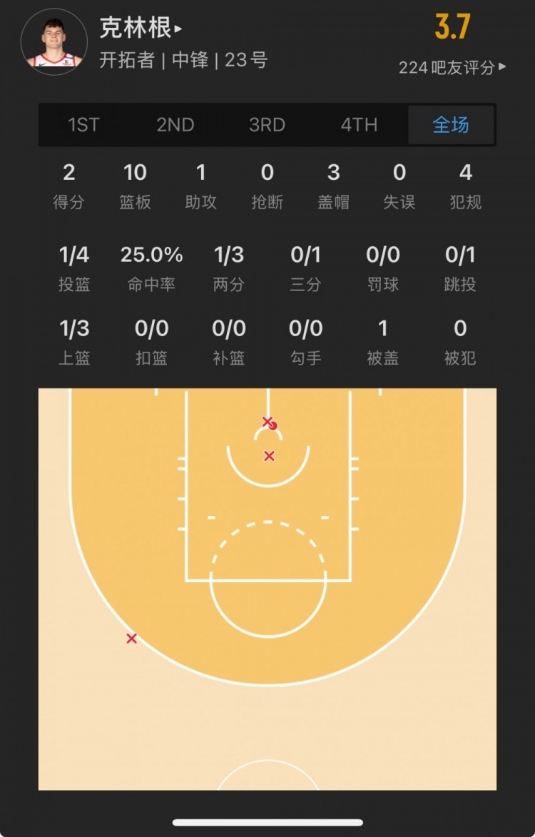 開(kāi)拓者7號秀 多諾萬(wàn)-克林根 登場(chǎng)32.9分鐘