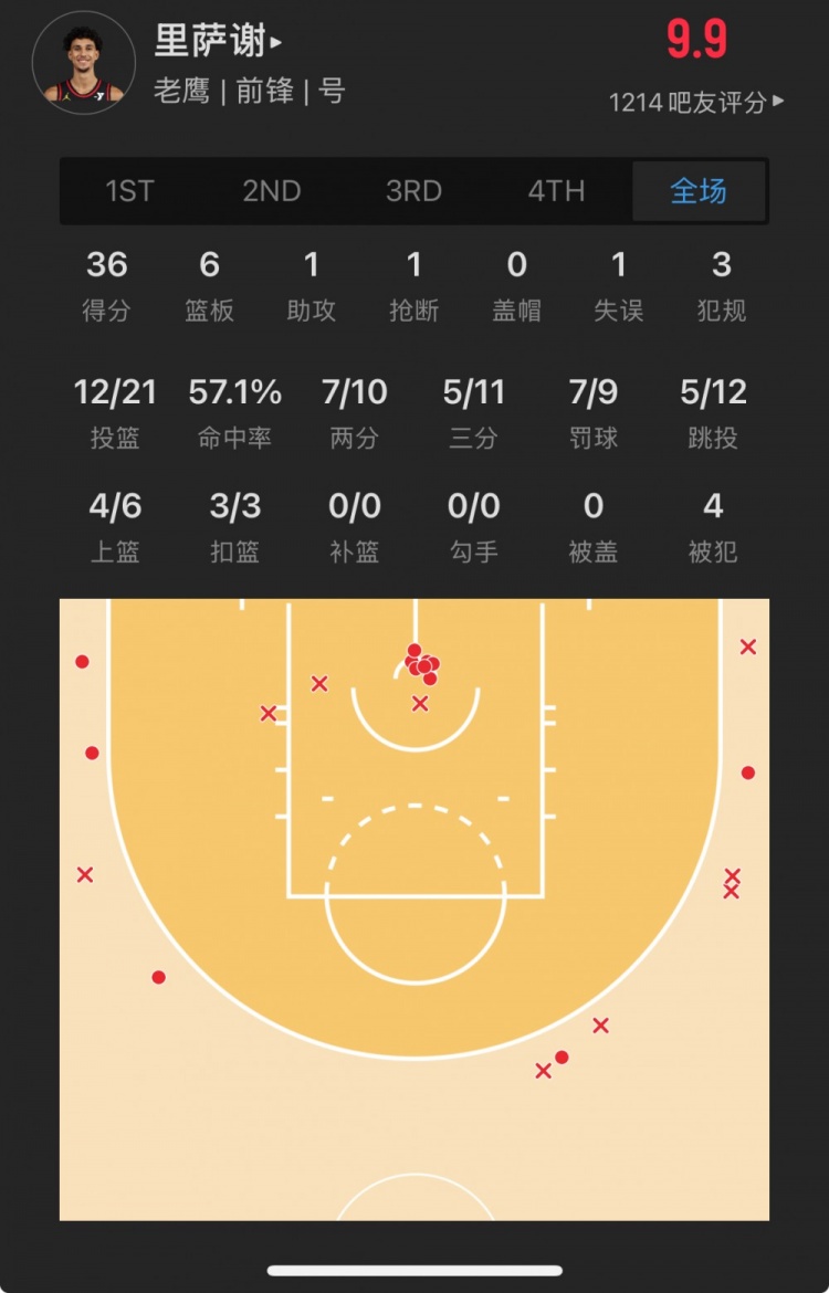 菜鳥(niǎo)丨狀元里薩謝21中12砍生涯新高36分 謝潑德復出6分2板3助2斷