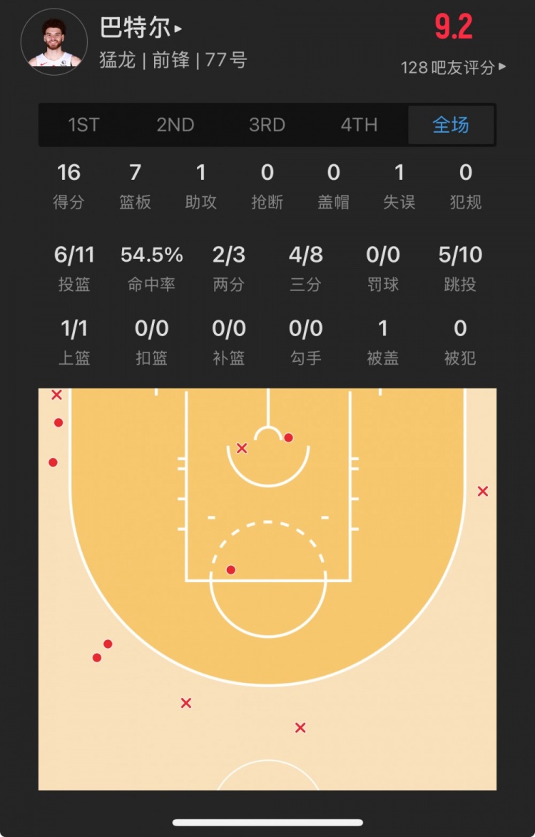 猛龍落選秀 賈米森-巴特爾 登場(chǎng)25.4分鐘