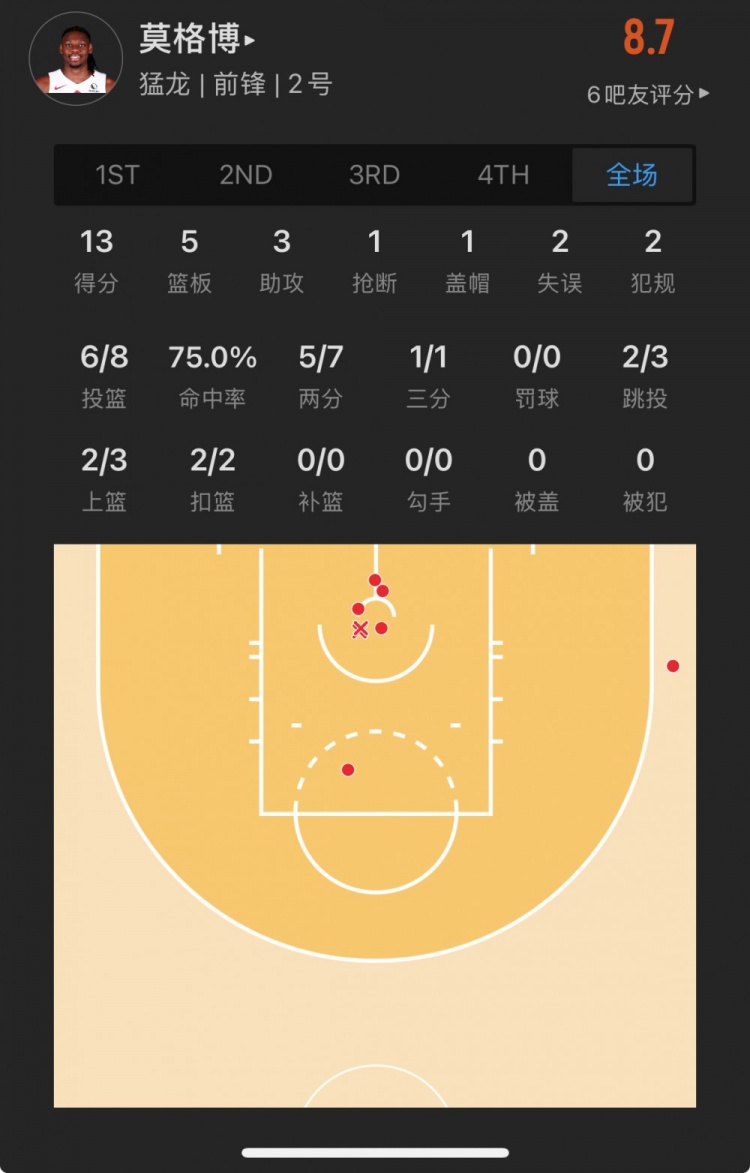 猛龍31號秀 喬納森-莫格博 登場(chǎng)25.1分鐘