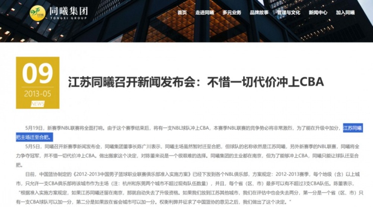 渴望晉級CBA的同曦俱樂(lè )部每分必爭,最終只能忍痛搬家到相鄰省份安徽的省會(huì )合肥。但在陳廣川的力主下,球隊仍命名為“江蘇同曦”而非“安徽同曦”。俱樂(lè )部更對球迷做出承諾:“我們同曦集團的大本營(yíng)在南京,我們的球隊一定會(huì )殺回來(lái)的?!憋@然,主場(chǎng)遷出江蘇省,不過(guò)是同曦為了打CBA的權宜之計。
