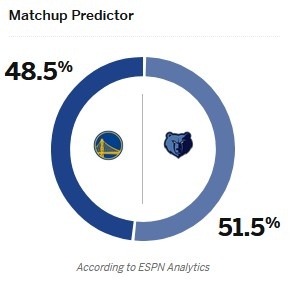 關(guān)鍵卡位戰!ESPN預測明日勇士獲勝概率為48.5% 灰熊51.5%