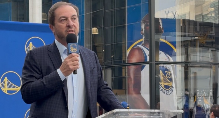 今日伊戈達拉9號球衣退役,賽前勇士在大通中心外為其舉行了徽章揭幕儀式,勇士老板拉科布發(fā)表了講話(huà),小吧整理了部分采訪(fǎng)內容。