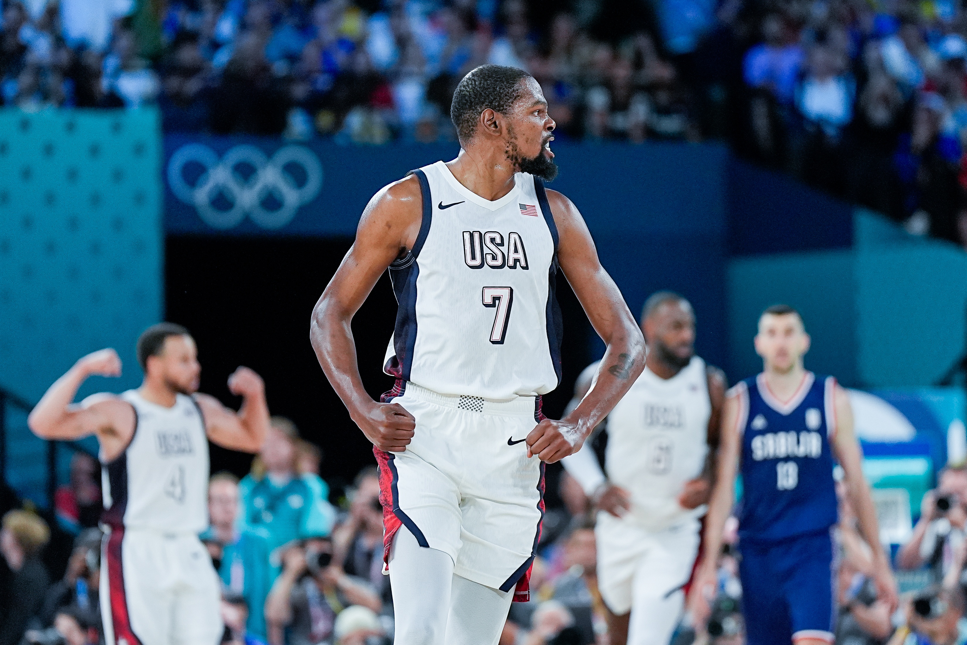 杜蘭特是美國男籃奧運歷史得分王,得到2012年倫敦奧運會(huì )、2016年里約熱內盧奧運會(huì )、2020年?yáng)|京奧運會(huì )、2024年巴黎奧運會(huì )的金牌。到2028年他將年滿(mǎn)40歲。