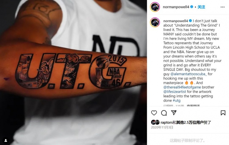 “Understand the Grind (理解磨礪)”一直都是諾曼-鮑威爾所秉持的人生信條,它以“UTD”的形式紋在了鮑威爾投籃手的小臂上,陪他一起面對所有挑戰。