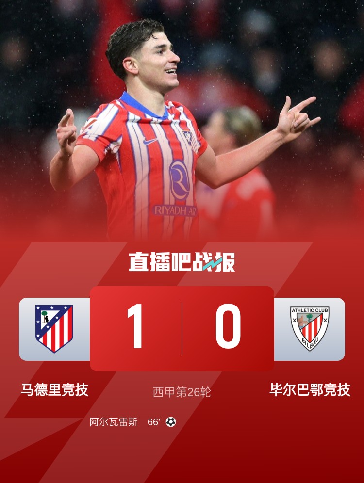 本輪西甲,馬競1-0擊敗畢巴,阿爾瓦雷斯攻入全場(chǎng)唯一進(jìn)球。此役后,馬競先賽登頂。