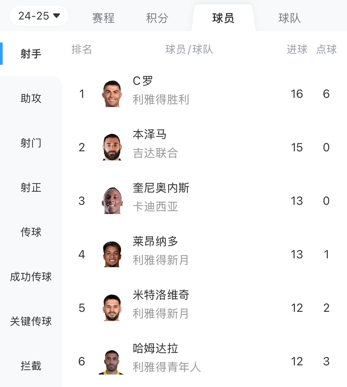 02月17日訊 本輪沙特聯(lián),本澤馬一射兩傳幫助吉達聯(lián)合4-1擊敗麥加統一,繼續占據積分榜榜首,本澤馬在沙特聯(lián)射手榜上也僅落后第一名C羅1球。