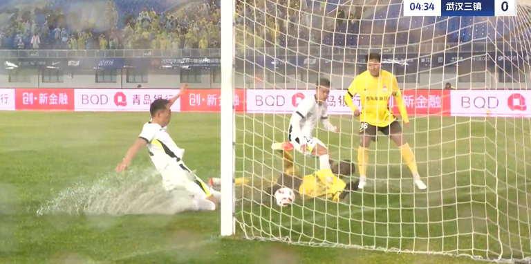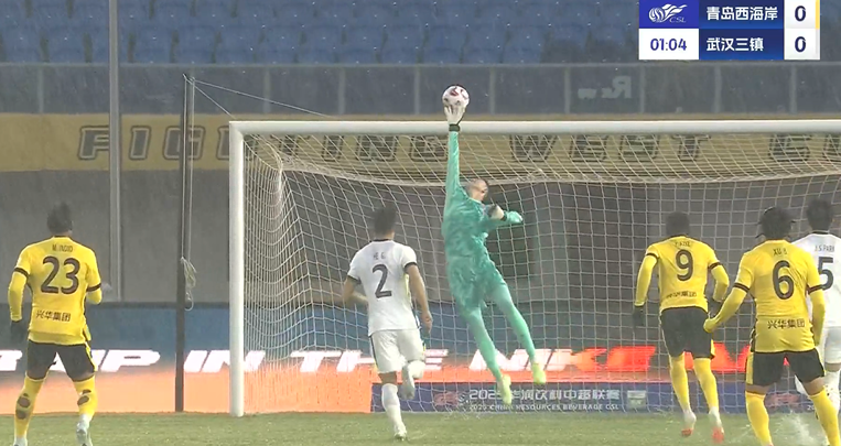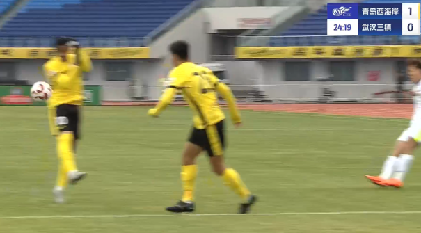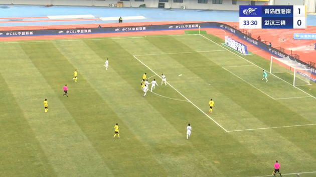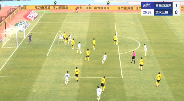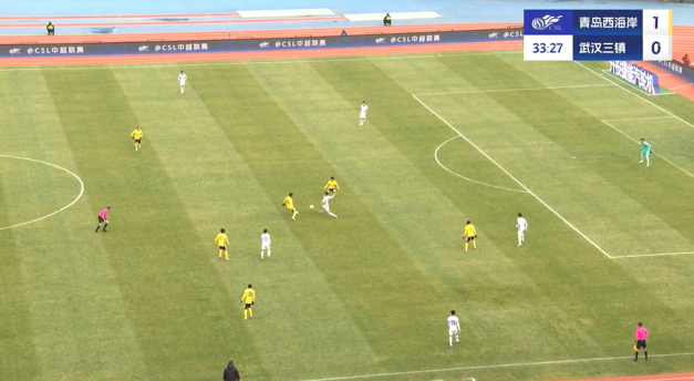 上半場(chǎng)補時(shí)3分鐘,青島西海岸1-0武漢三鎮。