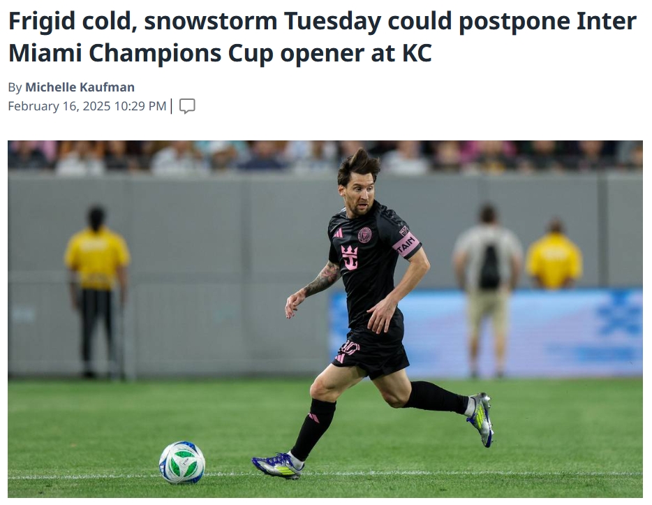 02月17日訊 據《邁阿密先驅報》報道,中北美聯(lián)冠軍杯首輪邁阿密?chē)H客戰堪薩斯城競技的比賽可能因為極端天氣推遲。