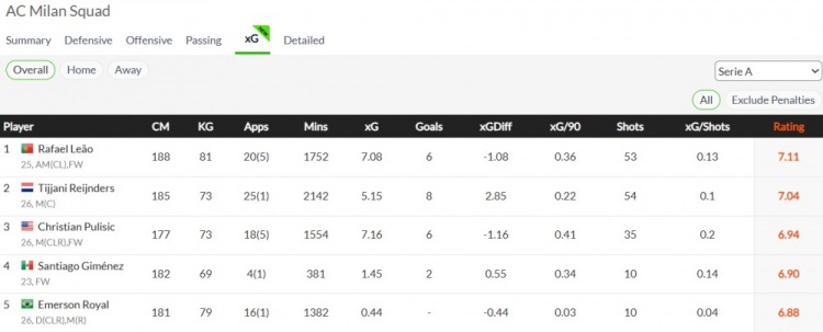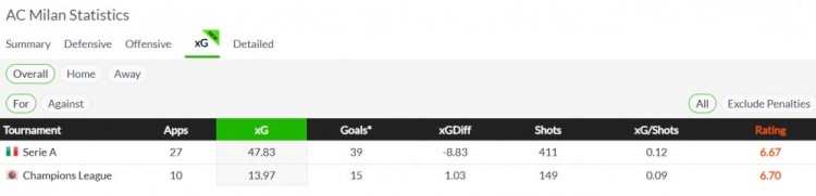 (賽季預計破門(mén)數的表現,及個(gè)人成績(jì)。對比之下國米的預計進(jìn)球數比米蘭多十個(gè))