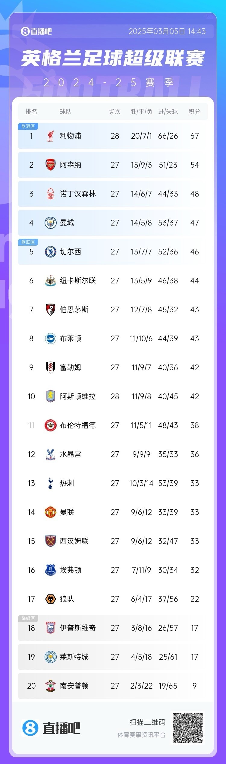 隨著(zhù)2024/25賽季英超聯(lián)賽進(jìn)入最后三個(gè)月,歐戰資格的爭奪可謂是精彩紛呈。目前排名第三的諾丁漢森林與排名第十的阿斯頓維拉僅有6分差距,不過(guò)維拉多賽一場(chǎng)。
