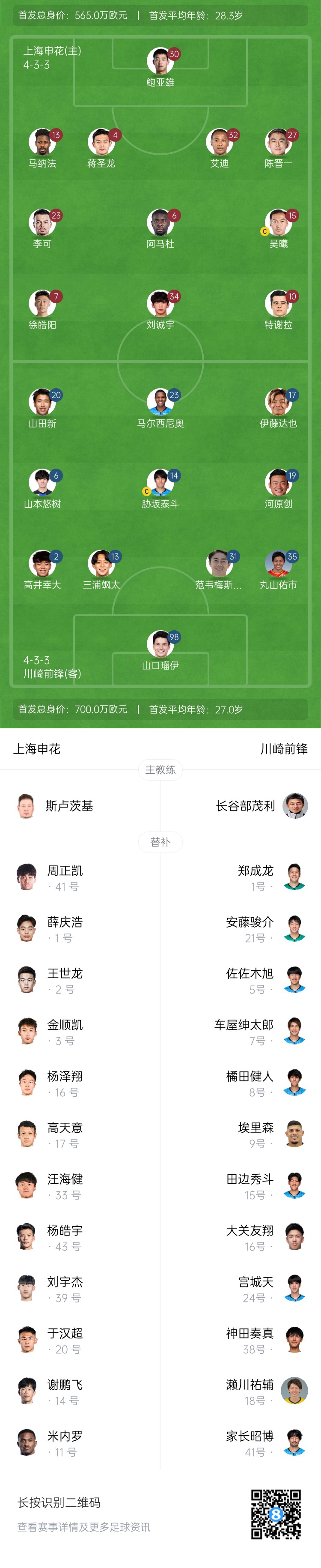 上海申花在聯(lián)賽階段排名第7,川崎前鋒在聯(lián)賽階段排名第2,兩隊本賽季首次交鋒申花2-0戰勝川崎。18歲國青小將劉誠宇生涯首次為申花成年隊首發(fā),上周他才剛完成中超首秀。
