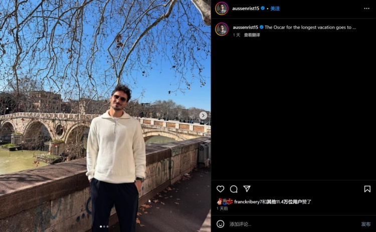 昨天,胡梅爾斯曬出自己在羅馬游玩的照片,由于正值奧斯卡頒獎時(shí)間,他配文:奧斯卡最長(cháng)假期獎頒發(fā)給......。不過(guò),由于在對陣科莫的比賽中,胡梅爾斯替補未出場(chǎng)。因此,有網(wǎng)友認為胡梅爾斯的配文是在暗諷拉涅利沒(méi)給自己出場(chǎng)機會(huì )。