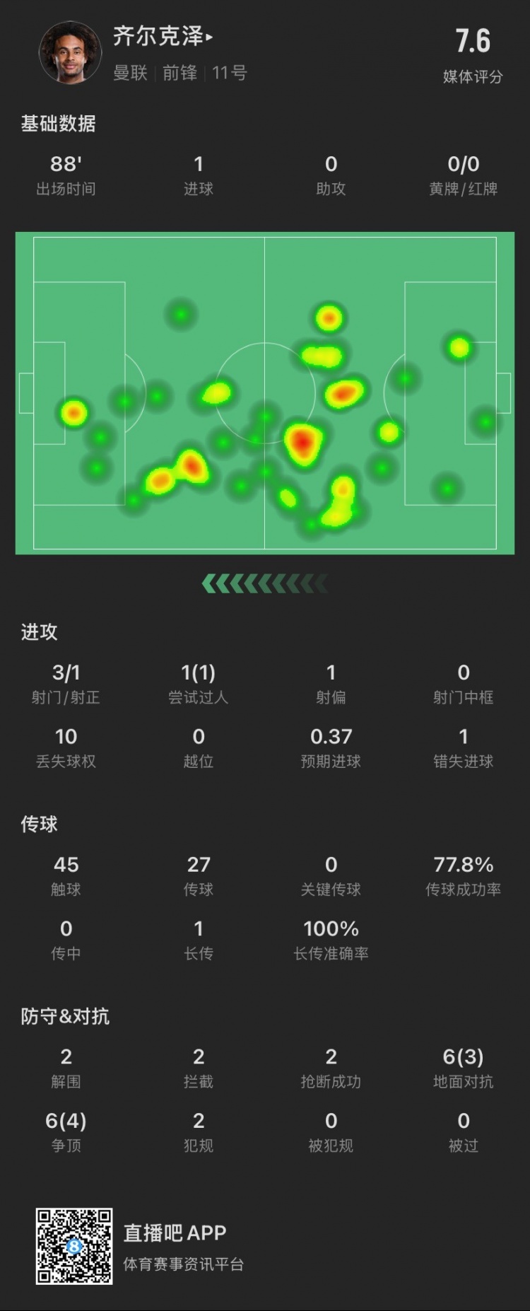 3月7日訊 歐聯(lián)杯1/8決賽首回合,曼聯(lián)客戰皇家社會(huì )的比賽正在進(jìn)行。第88分鐘,齊爾克澤被換下場(chǎng)。此役,他打進(jìn)一球,獲評7.6分。