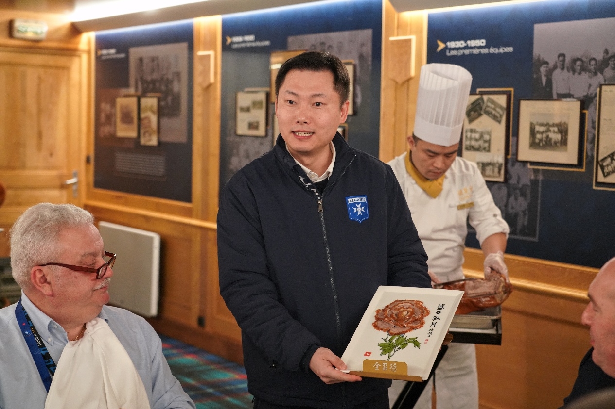 會(huì )面結束后,周云杰先生邀請迪亞洛主席一同共進(jìn)午餐。一同出席午宴的重要成員還有歐塞爾市長(cháng)馬勞、斯特拉斯堡主席馬克-凱勒和足協(xié)領(lǐng)導小組成員帕朗。本次午宴特別邀請了波爾多全聚德的主廚操刀制作烤鴨,希望各位客人可以在法國品嘗到地道的中國美食和文化。