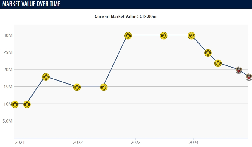 穆科科現年20歲,但據此前圖片報報道, 穆科科年齡被改小了4歲,他“父親”親承球員并非自己親生。本賽季這位德國前鋒被多特租借前往尼斯,出場(chǎng)22場(chǎng)比賽,僅打進(jìn)2球。目前球員德轉身價(jià)為1800萬(wàn)歐元。